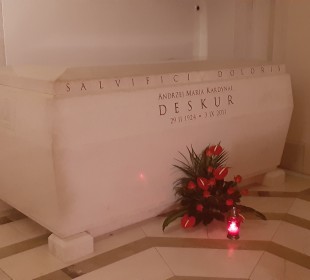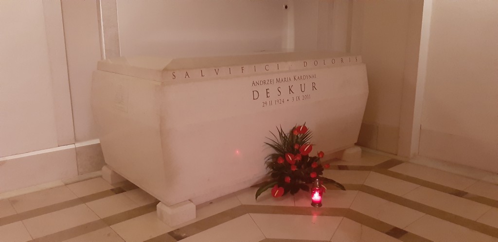 Po Mszy Św. kapłani udali się do krypty grobowej, by pomodlić się przy sarkofagu ś.p. Andrzeja Marii kardynała Deskura.