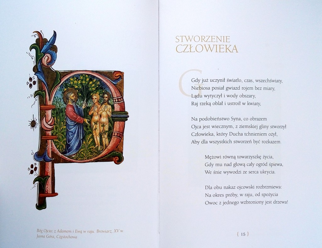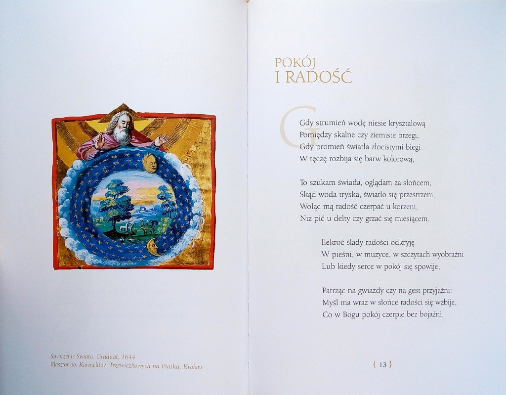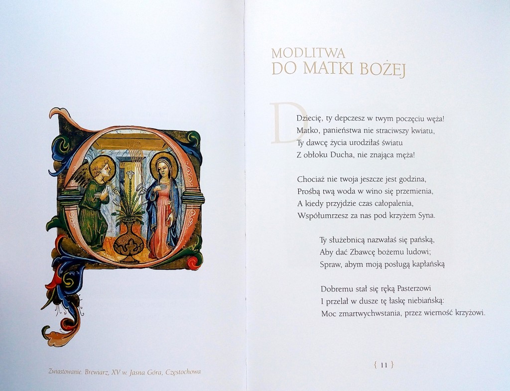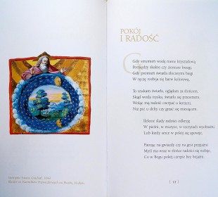 Poezja autorstwa Andrzeja Marii kardynała Deskura ilustrowana średniowiecznymi iluminacjami.